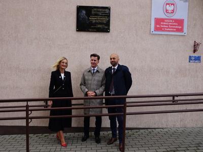 Następnie uczestnicy udali się na teren Szkoły Podstawowej, gdzie dokonano uroczystego odsłonięcia i poświęcenia tablicy upamiętniającej pobyt Stefana Żeromskiego w Szulmierzu. Tablica została odsłonięta dokładnie w 100. rocznicę śmierci pisarza i ma na celu utrwalić pamięć o jego obecności w naszej lokalnej historii. Fundatorem tablicy pamiątkowej jest Poseł na Sejm RP, a jednocześnie absolwent Szkoły Podstawowej im. Stefana Żeromskiego w Szulmierzu Pan Rafał Romanowski.