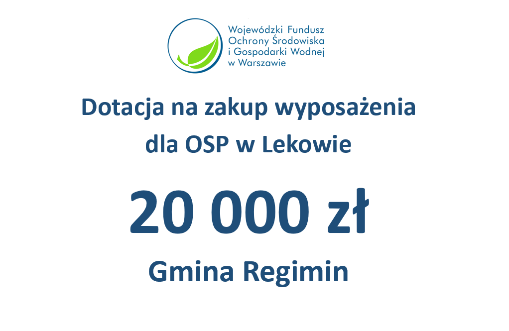- „Zakup wyposażenia dla OSP w Lekowie” kwota dofinansowania – 20 000,00 zł