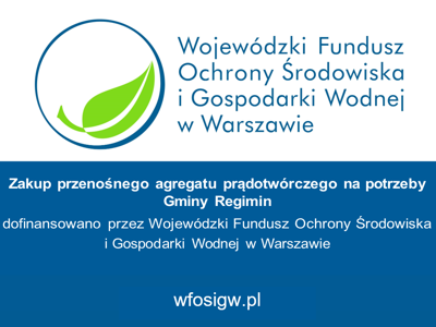 Zakończona została realizacja zadania pn. „Zakup przenośnego agregatu prądotwórczego na potrzeby gminy Regimin”.