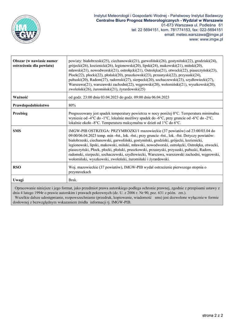Ostrzeżenie meteorologiczne Nr 61