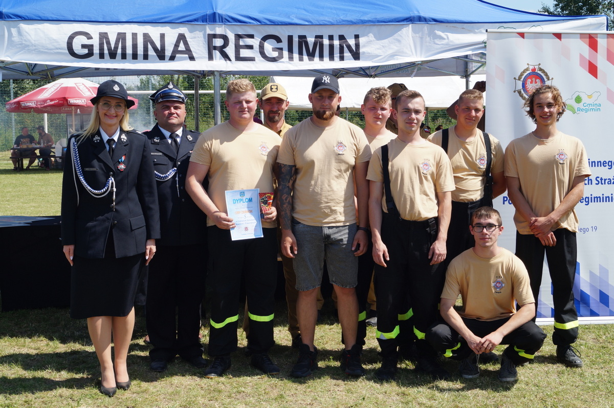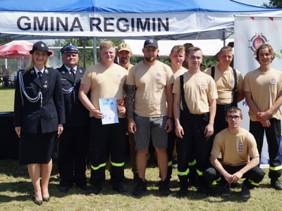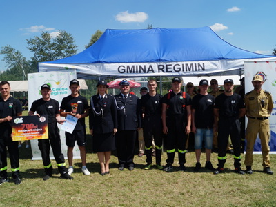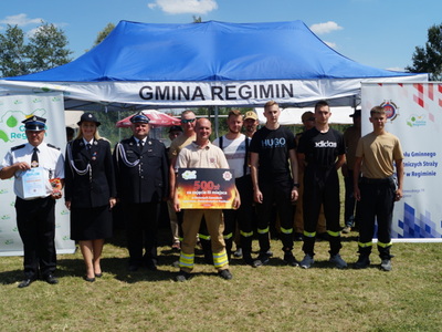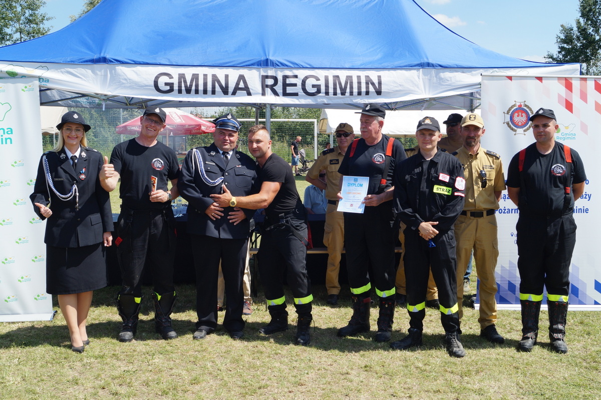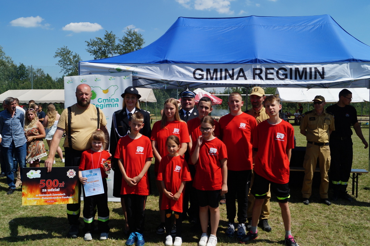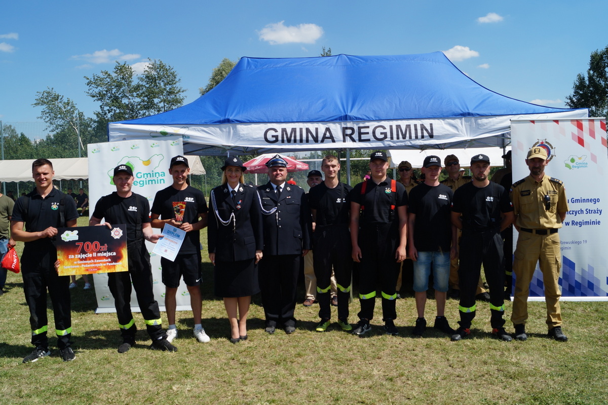 Puchary oraz nagrody wręczyli: Pani Mariola Kołakowska Wójt Gminy Regimin pełniąca jednocześnie funkcję Wiceprezesa ZOG ZOSP RP w Regiminie oraz dh Marcin Dobrzeniecki Naczelnik OSP Pawłowo. Pani Wójt podziękowała organizatorom, jednostce OSP w Pawłowie, za przygotowanie techniczne obiektu do przeprowadzenia zawodów.