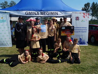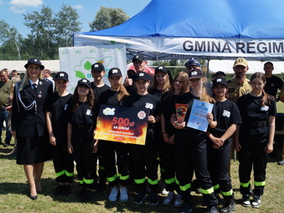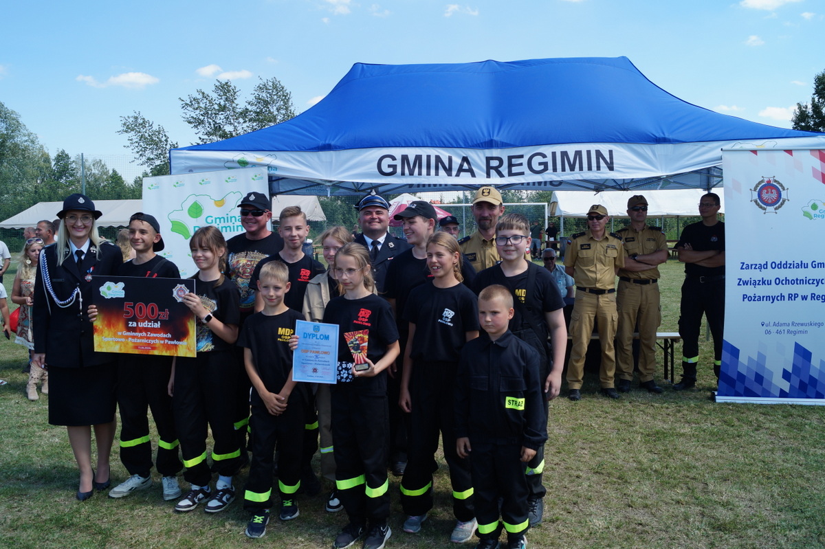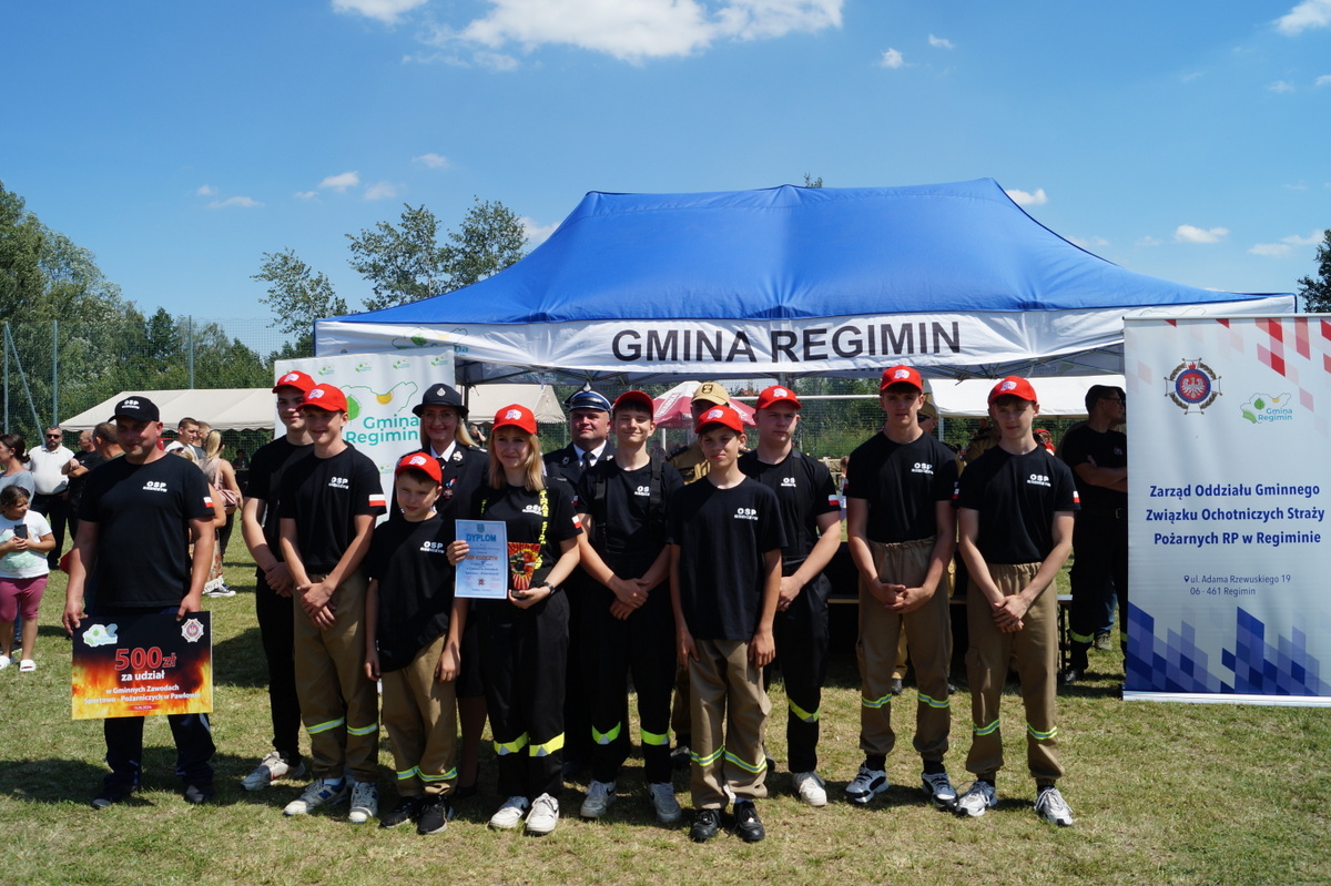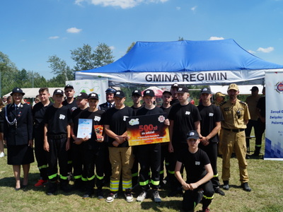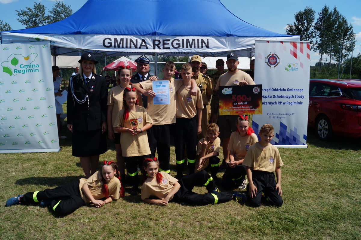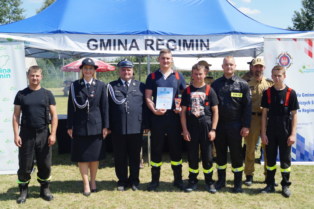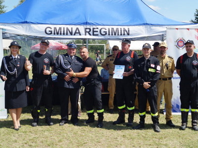 Puchary oraz nagrody wręczyli: Pani Mariola Kołakowska Wójt Gminy Regimin pełniąca jednocześnie funkcję Wiceprezesa ZOG ZOSP RP w Regiminie oraz dh Marcin Dobrzeniecki Naczelnik OSP Pawłowo. Pani Wójt podziękowała organizatorom, jednostce OSP w Pawłowie, za przygotowanie techniczne obiektu do przeprowadzenia zawodów.