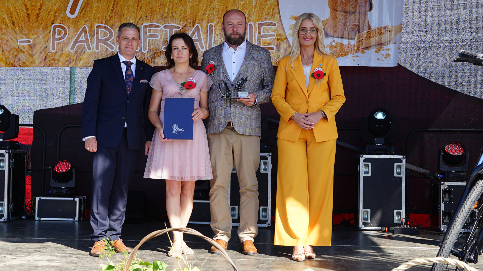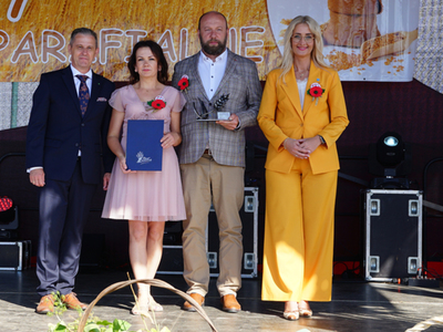 Następnie głos zabrali zaproszenie Goście. Pan Robert Paweł Morawski Wicestarosta Powiatu Ciechanowskiego podczas swojego przemówienia wręczył Państwu Grażynie i Radosławowi Trętowskim wyróżnienie Starosty Powiatu Ciechanowskiego za działalność rolniczą.