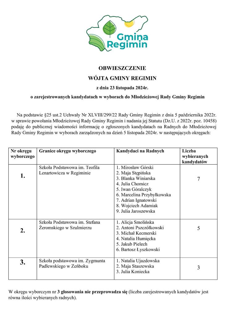 OBWIESZCZENIE WÓJTA GMINY REGIMIN z dnia...