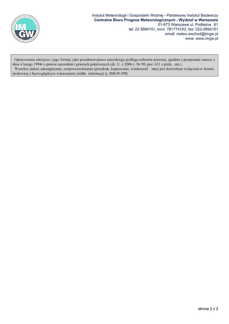 OSTRZEŻENIA METEOROLOGICZNE ZBIORCZO NR 326
